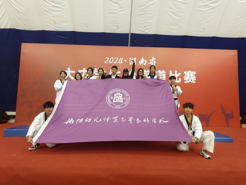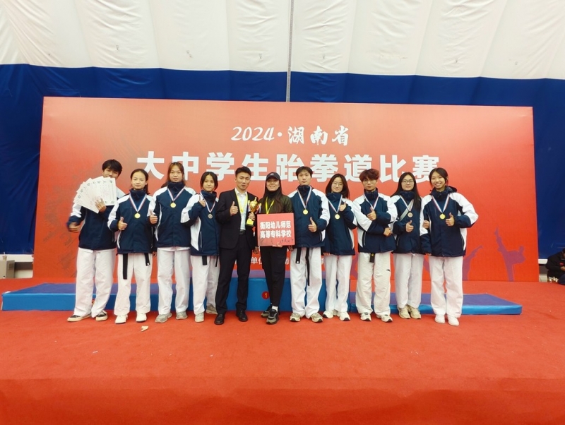 近日,我校跆拳道代表队在湖南省教育厅主办的 2024 年湖南省大中学生跆拳道比赛中获得2枚金牌,3枚铜牌,2个第五名的优异成绩,在参赛的34所高职院校中竞技团体总分排名第四,实现了我校参加省级体育赛事金牌零的突破,书写了我校体育事业发展的新篇章。