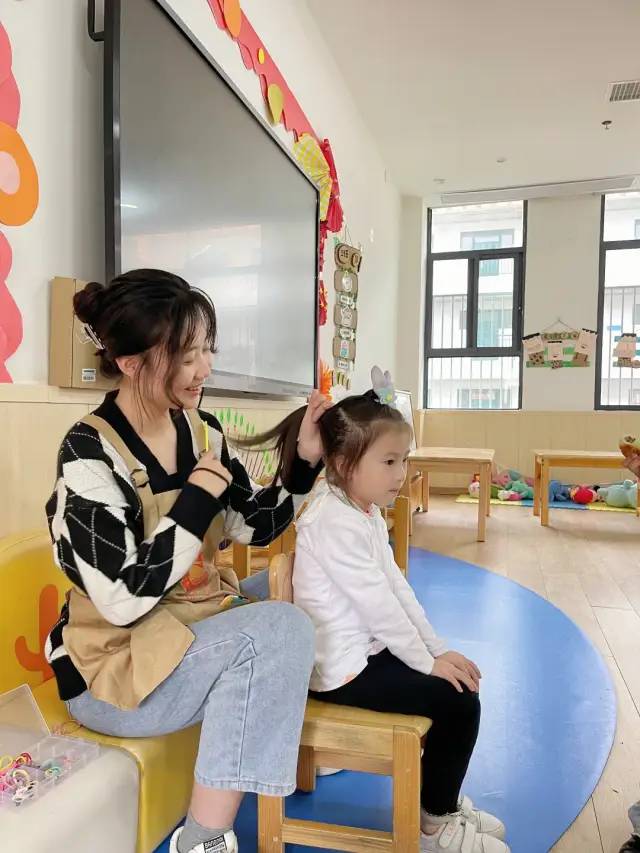 宛怡老师给小朋友扎头发