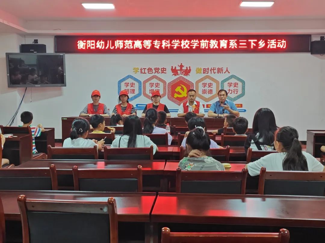为了加强实践育人,教育并引领大学生在社会实践中开阔视野、增强才干、了解社会、认识国情,以及培育和实践大学生的社会主义核心价值观,增强社会责任意识,磨练大学生的意志品质等,由衡阳市团委举办、买球赛的app官网校团委组织的“暑期三下乡活动”正式启动。7月6日,本次学前教育系“三下乡”小组前往了“常宁市洋泉镇”,进行“送教下乡”活动,活动由邓艳华书记、马奕斌专职副书记指导,吴鹏老师带队,学前2109班彭崴彬、学前2205班隆雨贤、学前2213班谭安妮三名同学作为志愿者参与本次活动。